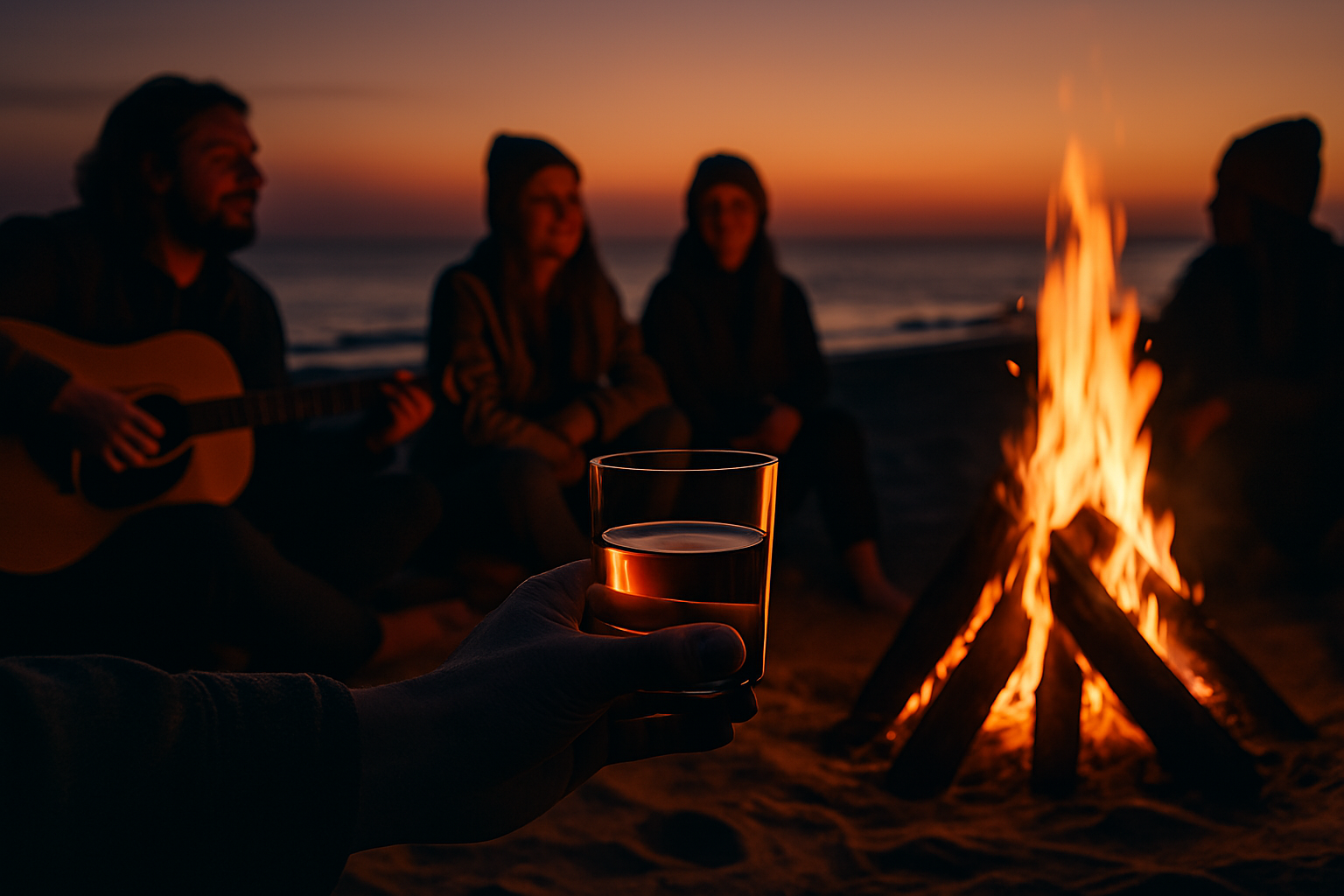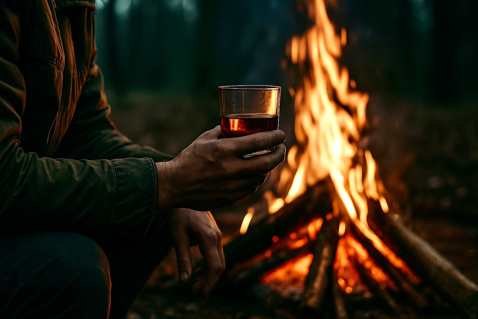 Glas in der Hand. Feuerschale im Blick. Ruhe im Kopf.
